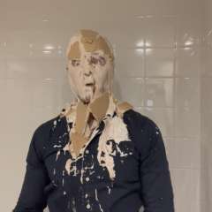 Millfoll was surprised by Seangunge with a big sloppy cream pie to the face
